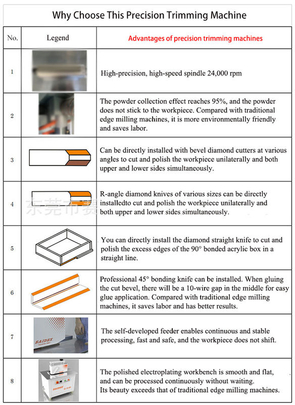 Η SAIDEX Acrylic Router Machine είναι το ιδανικό εργαλείο CNC router για να σας βοηθήσει να επεξεργαστείτε τα ακρυλικά γρήγορα και με ακρίβεια.αυτό το μηχάνημα είναι ιδανικό για την κοπή σε γωνία έως 45°Είναι πιστοποιημένο CE και έρχεται με σιδηροειδές πλαίσιο γωνίας και συσκευασία ξύλινης θήκης, καθιστώντας το μια ασφαλή και αξιόπιστη επιλογή για οποιοδήποτε εργαστήριο.